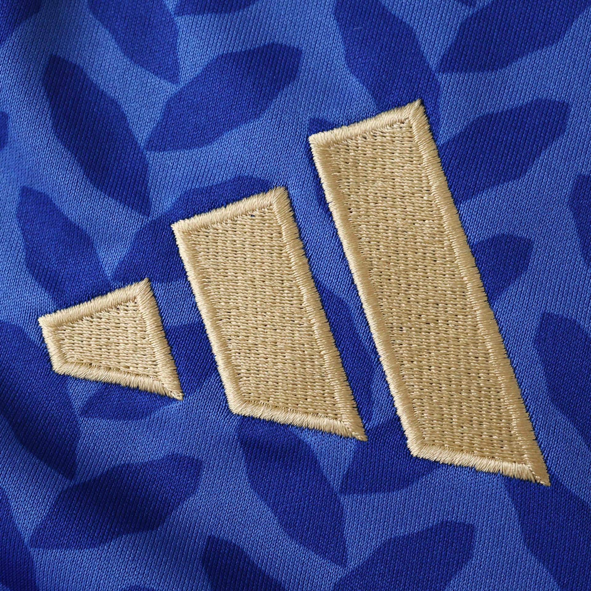 - Ikonisches Azzurri-Blau: Das Design zeichnet sich durch die für Italien typische tiefblaue Grundfarbe (die Namensgeberin der Mannschaft, "Azzurri") aus, die mit einem dezenten Lorbeerblattmuster (in Blauverlauf) kombiniert ist – eine Anspielung auf Italiens historische Verbindung mit Lorbeerkränzen (Symbole des Sieges).