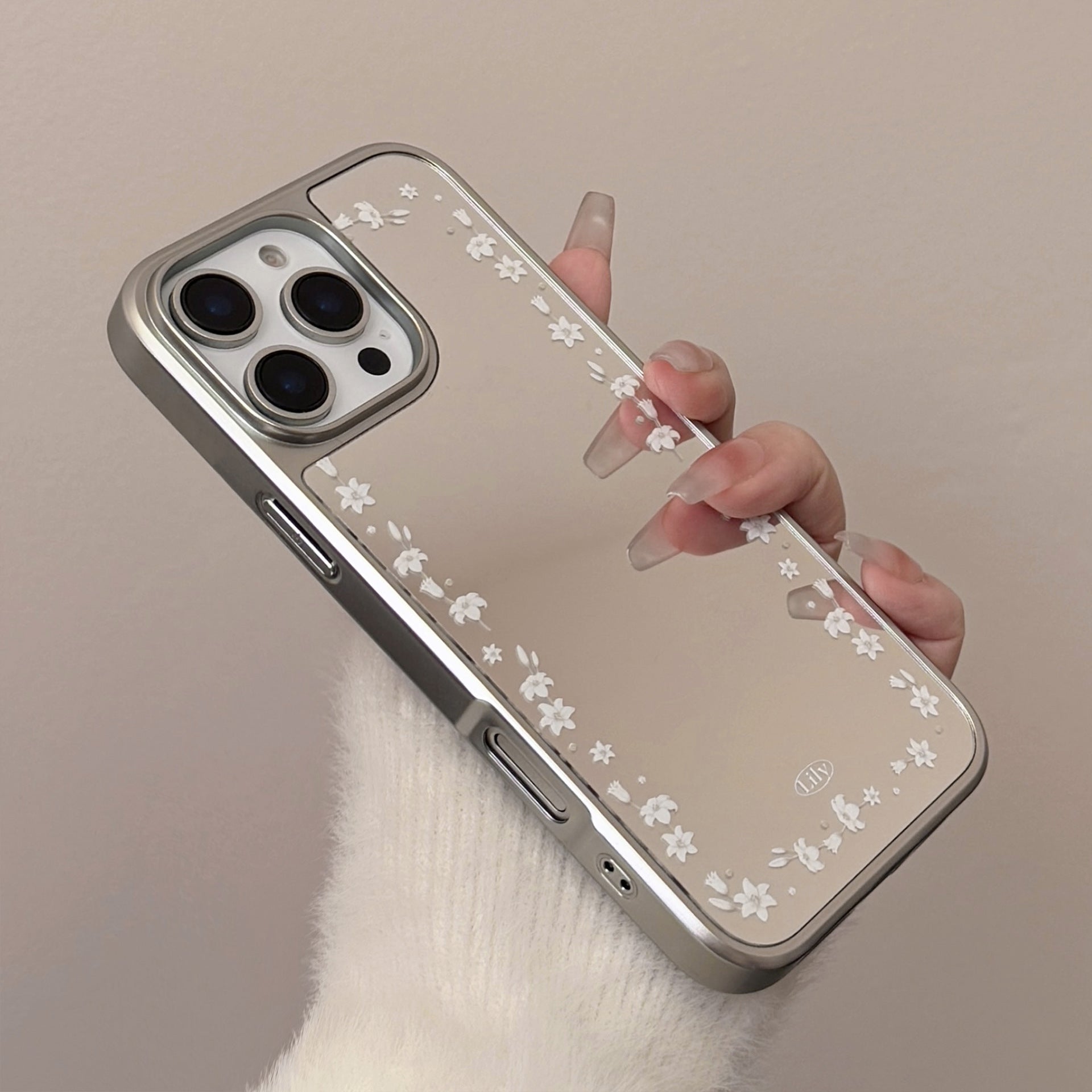 Electroplated silver edge for 16 apple 15promax mobile phone case iphone17 literary lily flower 13 mirror hard
