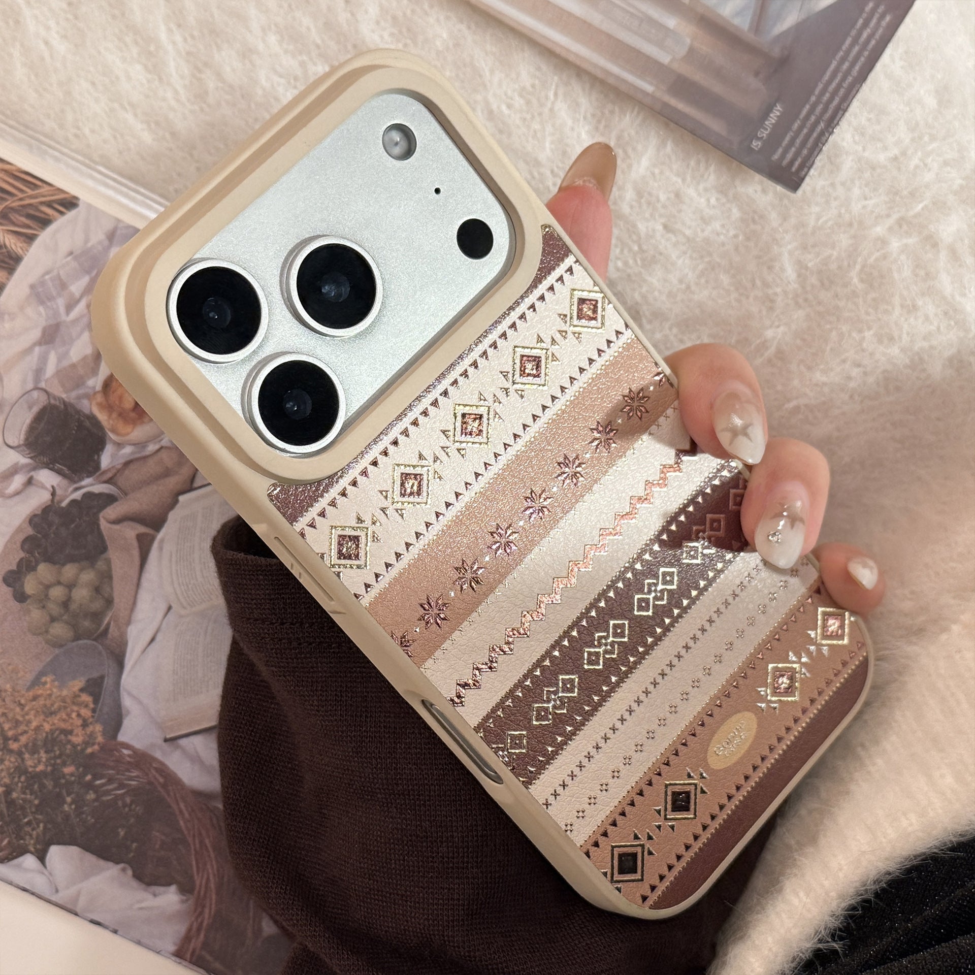 Gilt leather Apple 17promax mobile phone case 16 for iPhone15 personalized brown texture 13 Huawei Samsung
