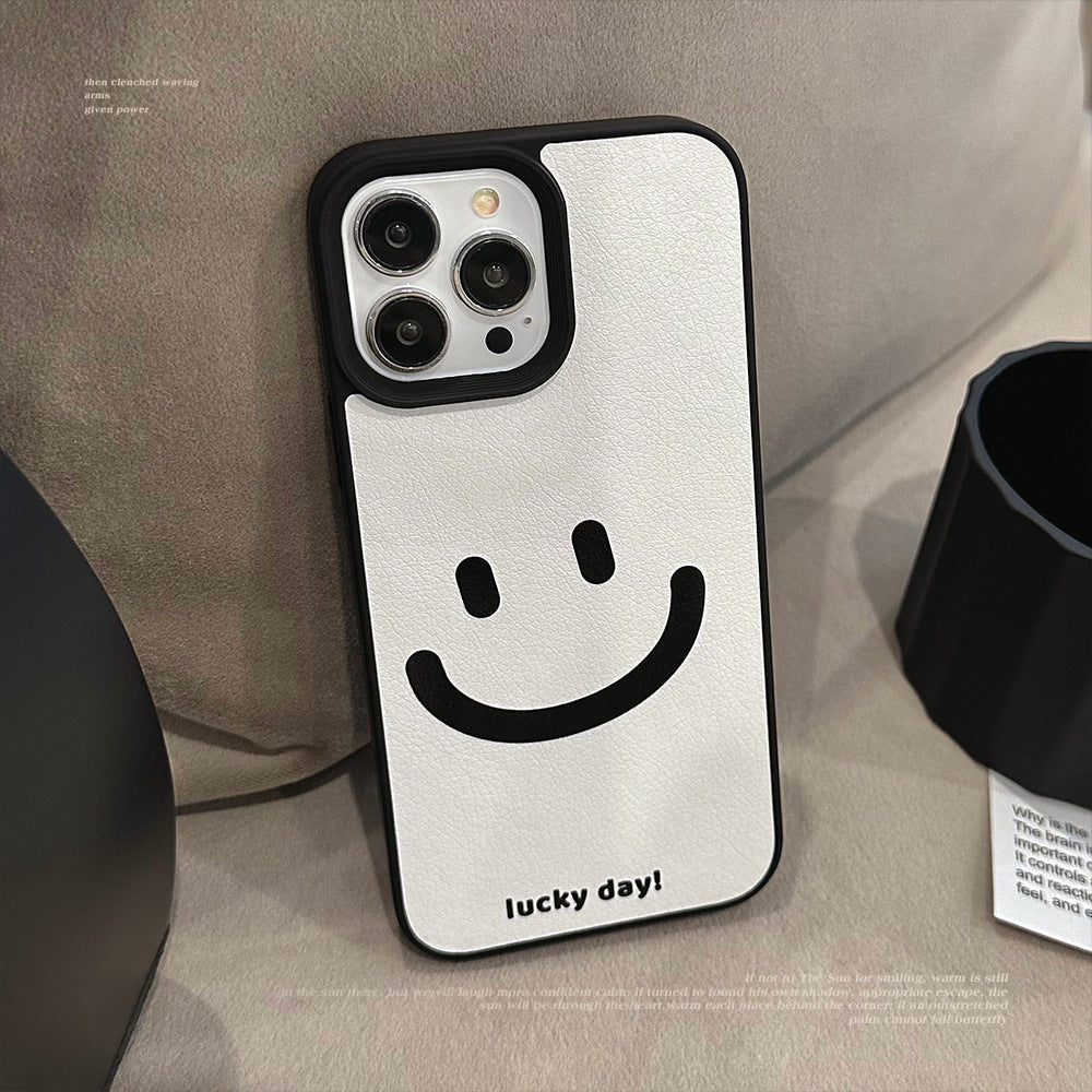 Minimal cure smiley face Apple phone case 17promax leather pattern 11 suitable for iPhone16 advanced sense 15 anti-drop