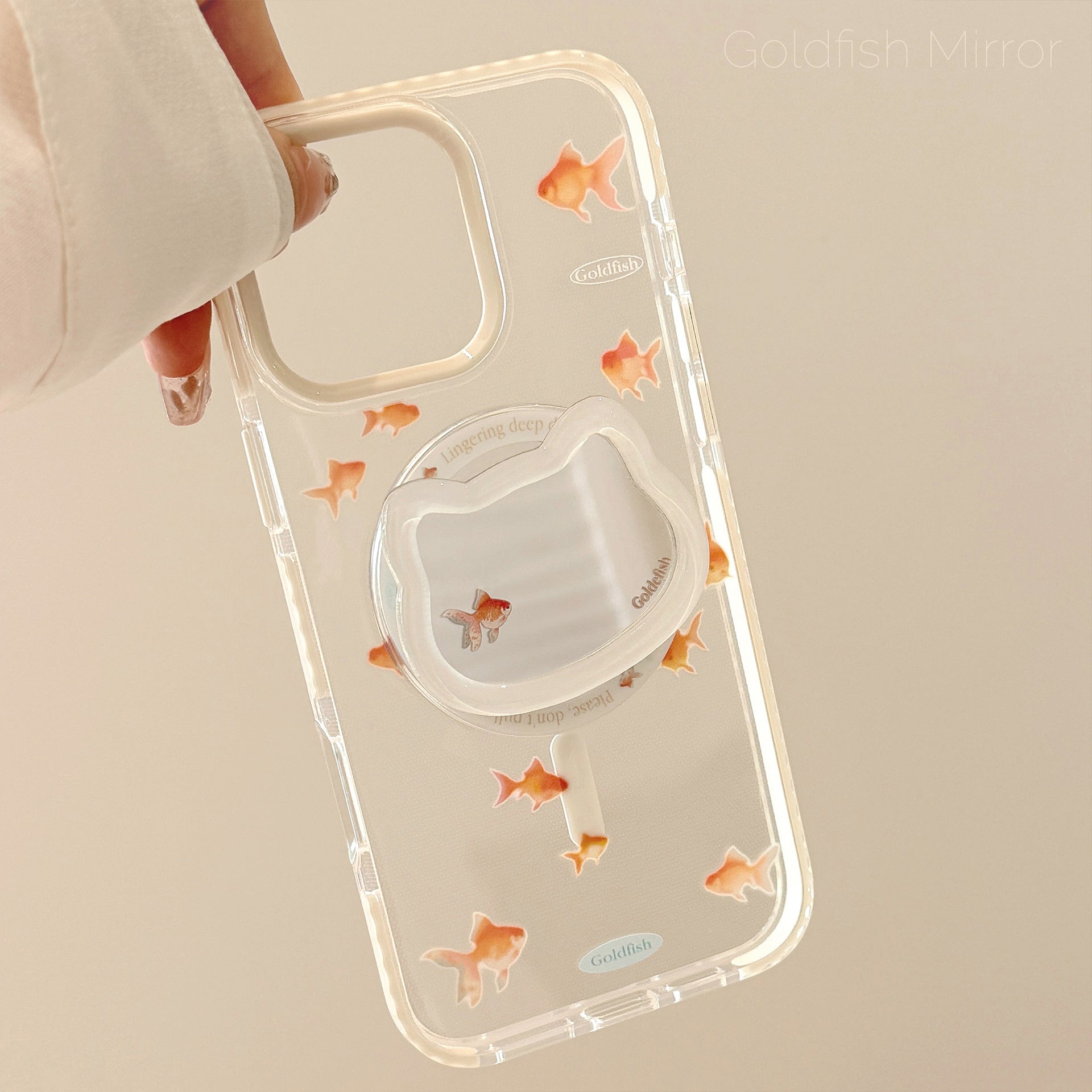 Mirror cat magnetic suction bracket 16promax transparent iPhone17 mobile phone case suitable for 13 small goldfish 14 national style