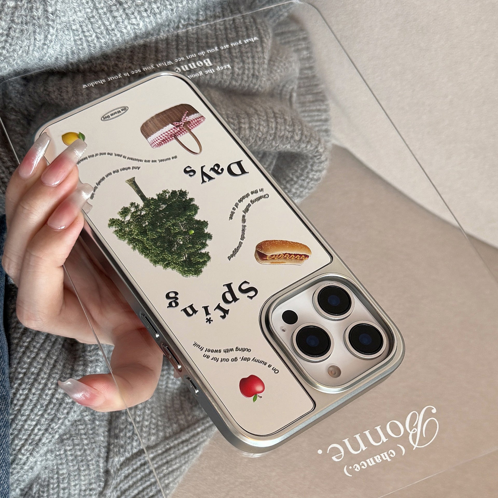 Spring picnic is suitable for Apple 15promax mobile phone case iphone16 mirror 17 electroplating hard 14 Korean Huawei