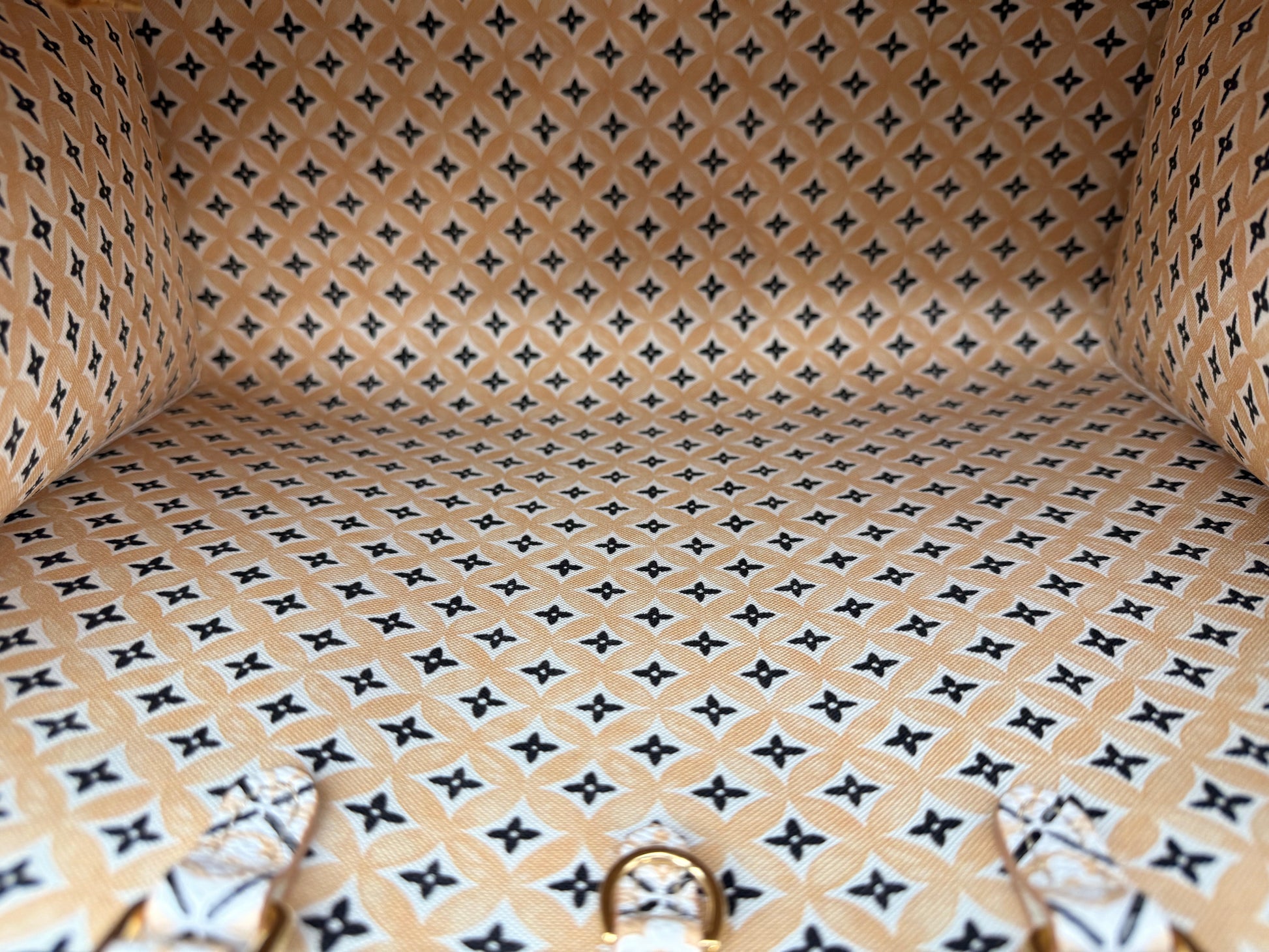A Onthego MM tem o tamanho perfeito para ser uma bolsa versátil para o dia a dia. Ideal para viagens, negócios, compras e muitas outras ocasiões, esta bolsa comporta diversos itens essenciais sem ser volumosa. Use-a pelas alças superiores ou pelas alças de ombro; é uma bolsa altamente funcional e elegante. Nesta deslumbrante cor bege da coleção By the Pool 2023, esgotou rapidamente no lançamento e agora só está disponível no mercado de revenda. Este exemplar em particular está sem uso e praticamente novo.